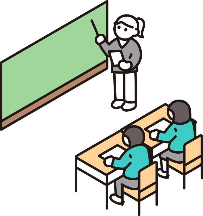 クラスメイトがいる教室に入る場面 ⇒ 笑顔で挨拶をする ⇒ みんな笑顔で挨拶を返してくれる